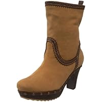 I purchased these boots at a great discount. I fell in love with them almost immediately. They are very comfortable with the added rubber sole and the heel height is perfect for dressing up, but not to tall to walk easily in. The studs around the bottom of the boots are really cute, also the shiny material sewn in adds to the beauty of them. I get lots of compliments on these boots. I will keep my eyes open for more styles from this Brand.