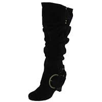 Want NAUGHTY MONKEY Juggernaut Womens Buckle Knee High Wedge Heel Suede Boots Shoes Black Discount?