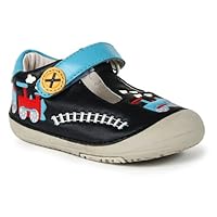 Momo Baby Toddler T-Strap Leather Shoes - Train Black (Size 4 - 6.5)