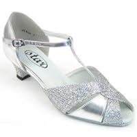 Star Ladies 600612 Silver Leather Low-Heel T-Strap Sandal Heel-1.5" Slim Cuban