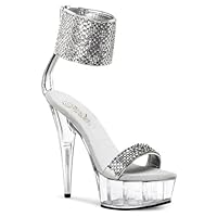 6 Inch Metallic Rhinestone Cuff Sandals Gold Silver Women''s Open Toe Platform Sandals
